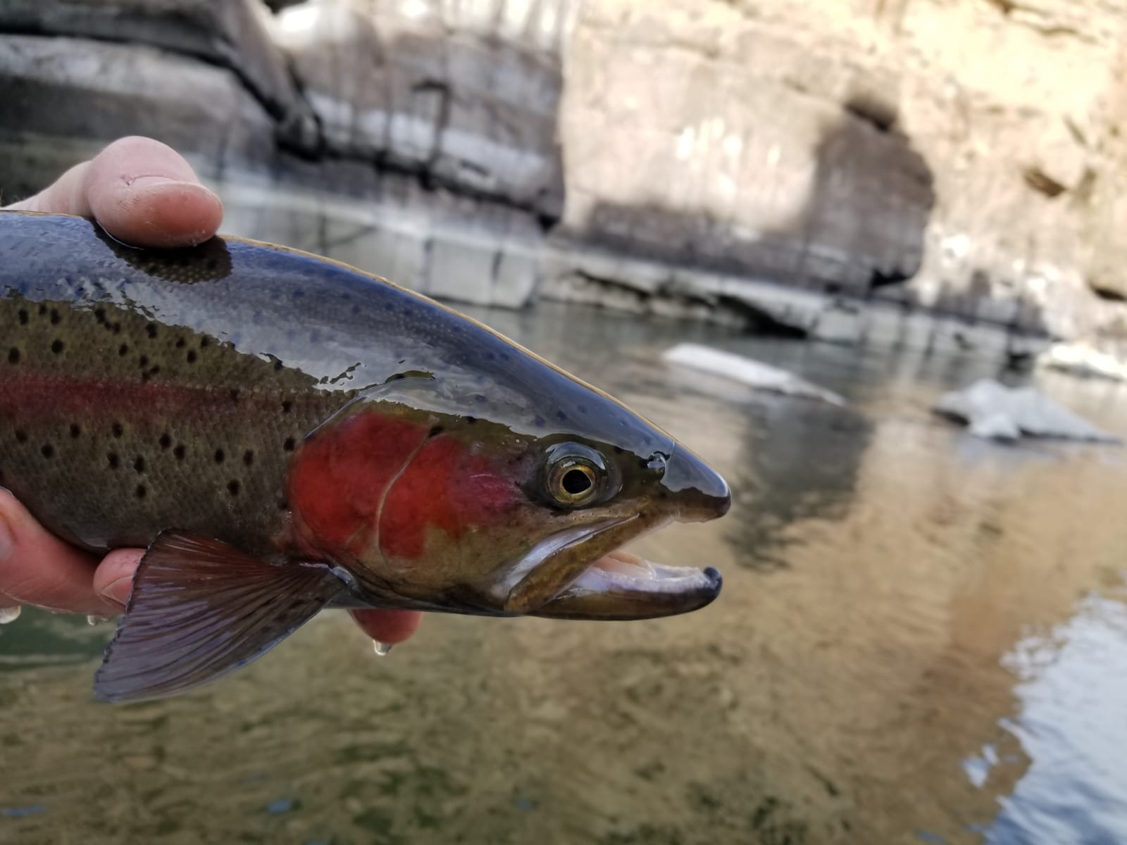 Annelids, midges, scuds are in play as you wade the meadows section. The canyon section this time of year can be dangerous with ice forming the already hazardous boulders.